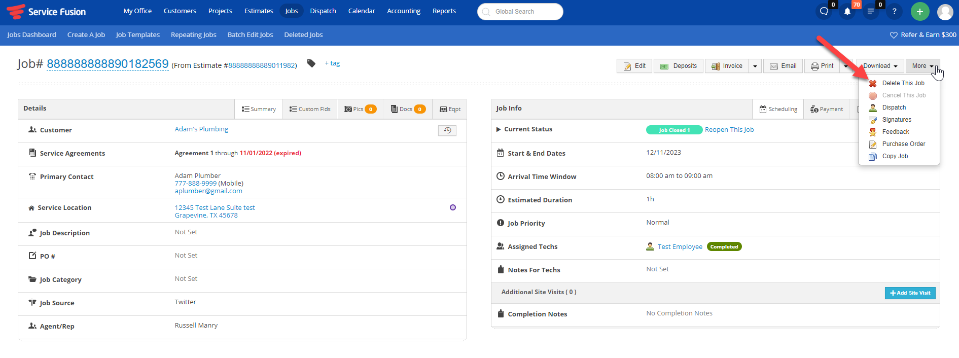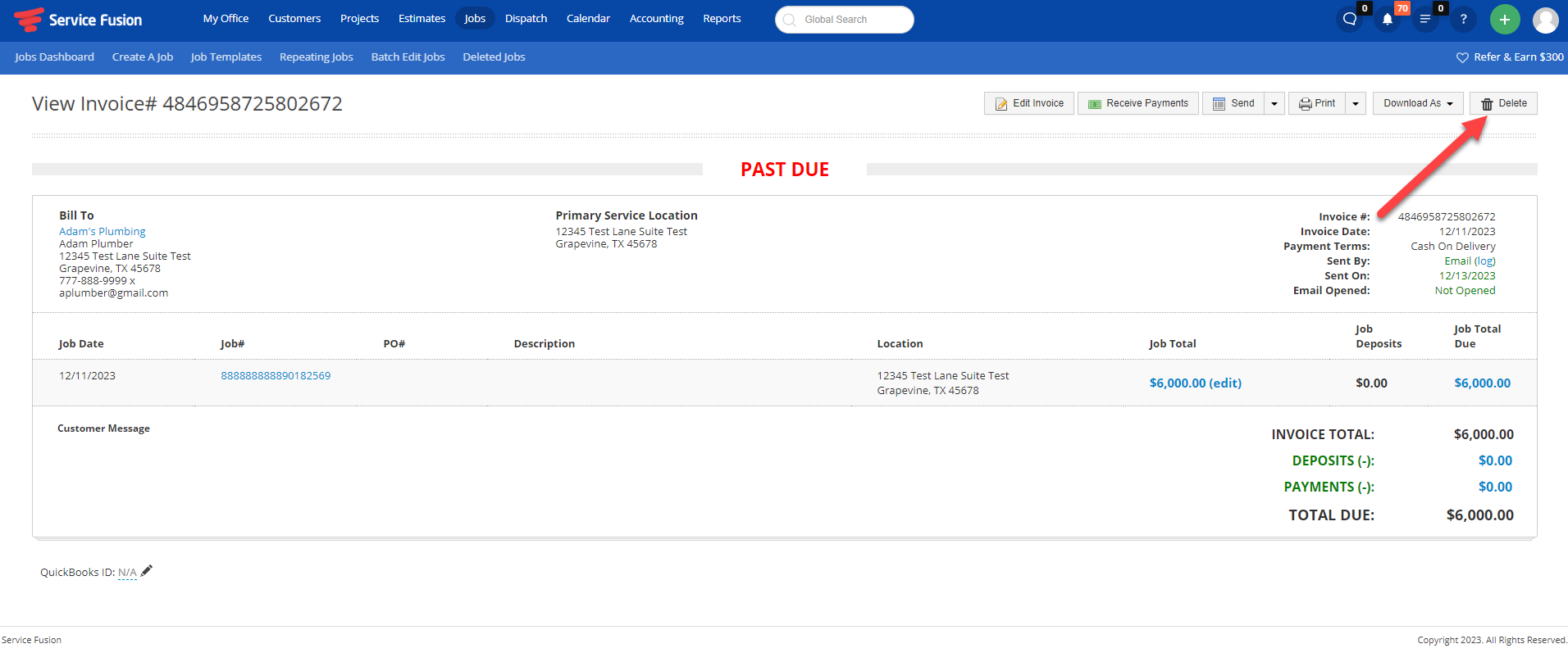 - Jobs cannot be deleted if there is an invoice associated with this job; the invoice must be deleted first